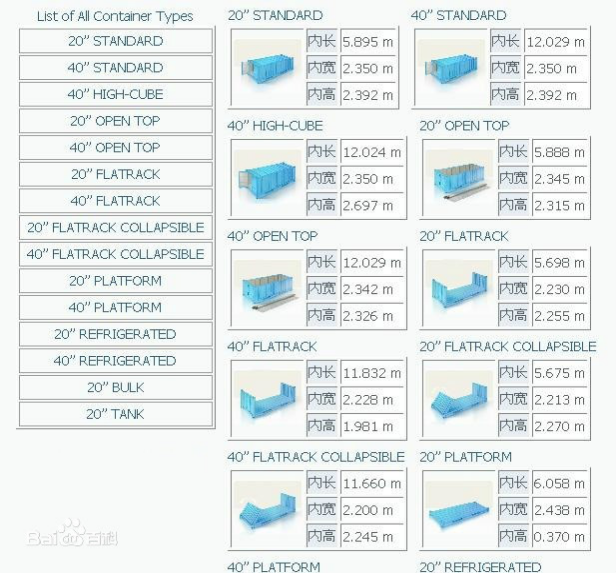 集裝箱外尺寸,(container's overall external dimensions)包括集裝箱*性附件在內(nèi)的集裝箱外部*的長、寬、高尺寸。