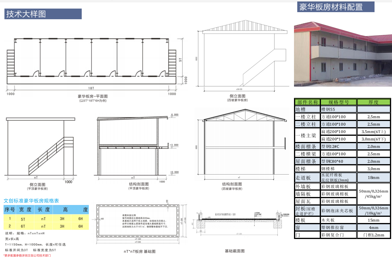 7、規(guī)格多樣。豪華活動(dòng)板房采用標(biāo)準(zhǔn)化構(gòu)件,長(zhǎng)和寬均以T(1K=1150mm)為模數(shù),高以P(1P=950mm)為模數(shù)。房屋橫向尺寸為mK+100,縱向尺寸為nK+100。